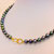 Collier van zwarte zoetwaterparels (7 mm) met 14 karaat gouden sluiting 42,5 cm lang.