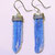 Oorbel met ruwe kyaniet gevat in een sierrand van zilver 38 mm lang, met zilveren oor haken.