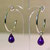 Oor creool van zilver 26 mm groot 1,8 mm dik. Gefacetteerde amethist druppel van 10x7 mm groot.